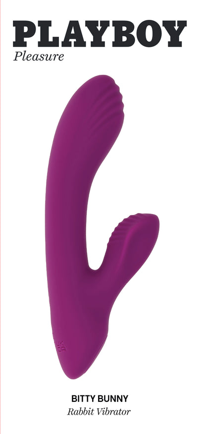 Playboy Pleasure Bitty Bunny Rabbit Vibrator from Evolved Novelties. All the power and design of a full size Rabbit Vibrator wrapped up in the petite package of Bitty Bunny. This super flexible mini marvel has a gently arched main shaft designed to reach the G-Spot easily with a ribbed head for added stimulation. The winged external stimulator vibrates in unison with the main shaft and features a textured ridge for precise clitoral stimulation. Panel details: Play with me key feature. Dual motor Vibrator, G Spot shaft. Vibration: 7 vibrating speeds and rhythms, motors controlled together. Materials: Body safe Silicone, Phthalate free and Latex free. Waterproof vibrations, Submersible waterplay. 5 years warranty. Rechargeable via a USB cable, included. Sze specifiactions: Vibrator height 5.8 inches, 2.19 inches width by 19 inches in depth 1.07 inches. insertable length: 3.75 inches, insertable diameter 1.15 inches. Categories: Vibrators, Rabbit Style, Vibrators, Rechargeable Vibrators, Sex Toys for Women, G-Spot Rabbit Style. 2023.