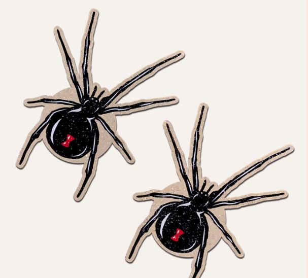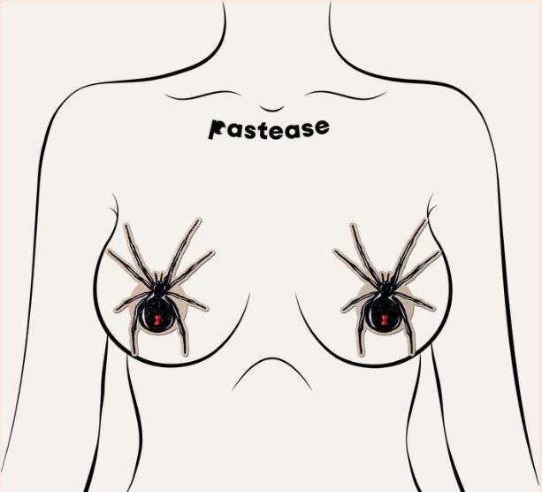 Unleash your inner enchantress with the new Spooky Black Widow design from Pastease®! These tantalizing nipple pasties are the perfect blend of mystery, allure, and sophistication, designed to captivate and mesmerize. Crafted from luxurious sparkling velvet, these pasties feature an intricate black widow spider design that glimmers with a dark, enchanting beauty. The velvet material adds a touch of elegance, making these pasties not just an accessory, but a statement piece that elevates your look to a whole new level of seduction.