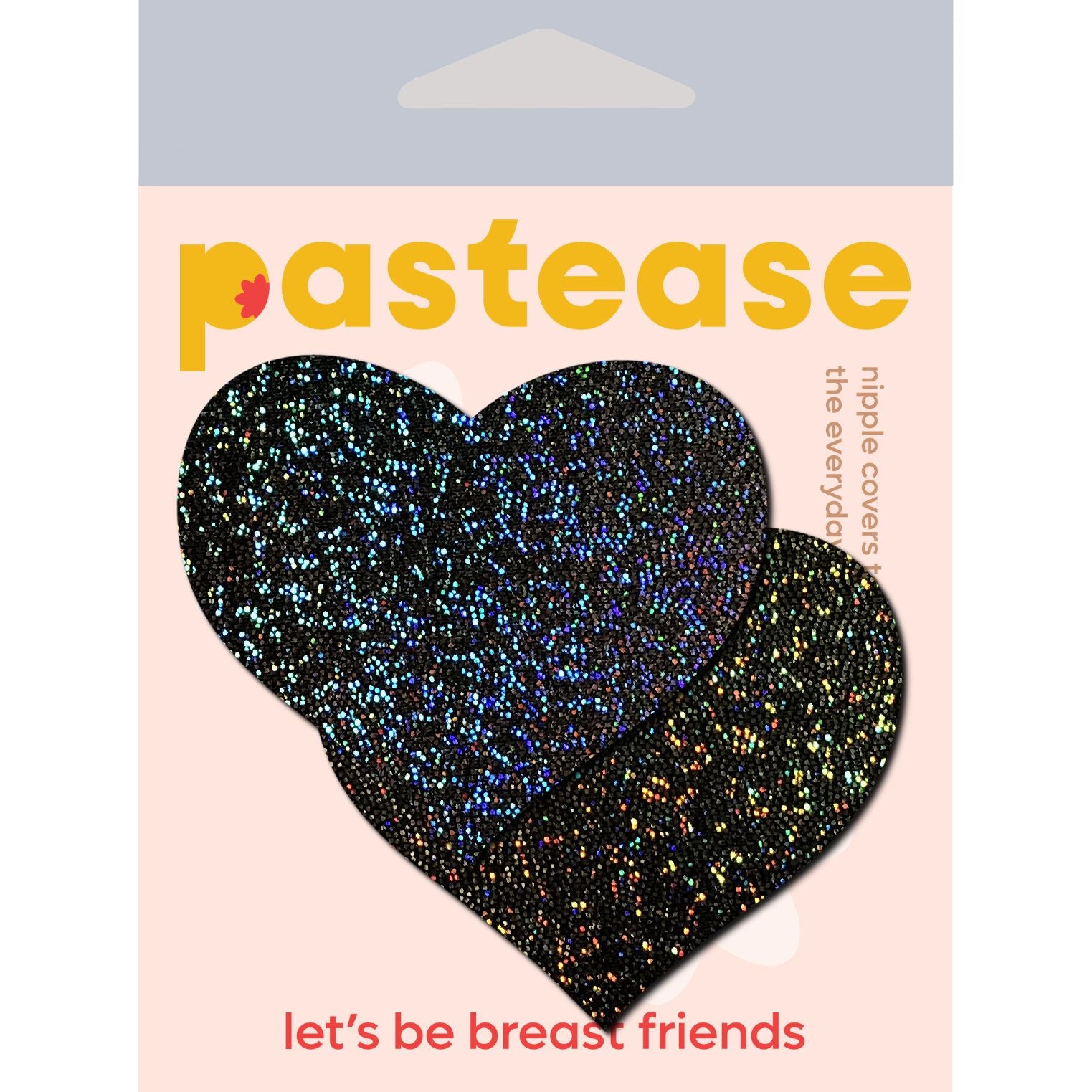 Pastease Glitter Heart Black set of two Pasties. One size fits most. Love: Black Glitter Heart Nipple Pasties by Pastease are hand made in the USA of soft form fitting glittery material that forms seamlessly to curves and resists wrinkling over hardening nipples. Just peel and stick on clean, dry skin. All Pastease Pasties feature latex free, medical grade, waterproof adhesive that stay securely in place for as long as you like and until they are gently removed. Conceal or reveal with Pastease nipple pasties when worn with a sexy outfit, daring bikini, sheer top, revealing dress, Hefty bag, body lotion, crazy costume, party theme or nothing at all! Dimensions 3 inches by 2.5 inches. Coverage diameter 1.8 inches. Pastease Brand Pasties are the fun maker that brings out your inner tease! Categories: Lingerie, Clothing, Valentine's Day, Nipple Play, Pasties, Accessories. Restricted, Amazon Restricted. Primary image package. How to apply pasties image. 2023.