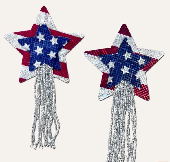 Pastease tassel a/patriotic sparkling stars $ stripes usa