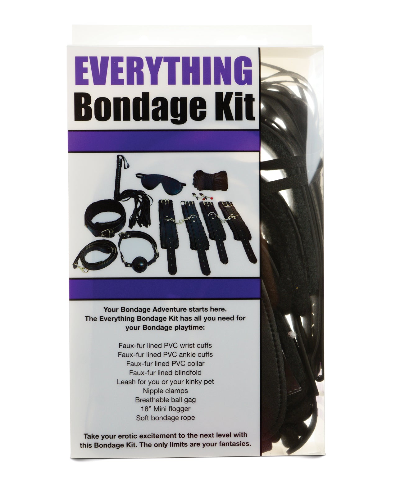 For those who want a head start on all things bondage, this kit includes a little bit of everything. Fleece-lined PVC wrist cuffs, ankle cuffs and collar make for a comfortable intro to a personal bondage fantasy.