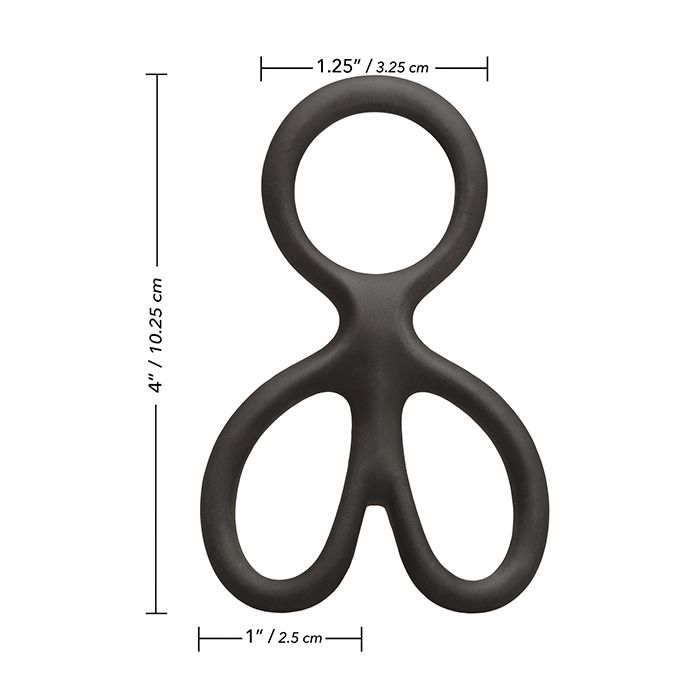 The lightweight ring is made from ultra soft and smooth, super stretchy phthalate free, unscented silicone, and measures a compact 4” x 2.5”/10.25 cm x 6.25 cm overall. The comfortable erection keeper features a stretchy cock ring and built-in independent scrotum rings for added stamina support. The erotic design enhances arousal and stimulation for you and your lover and is easy to fit and to remove after play.