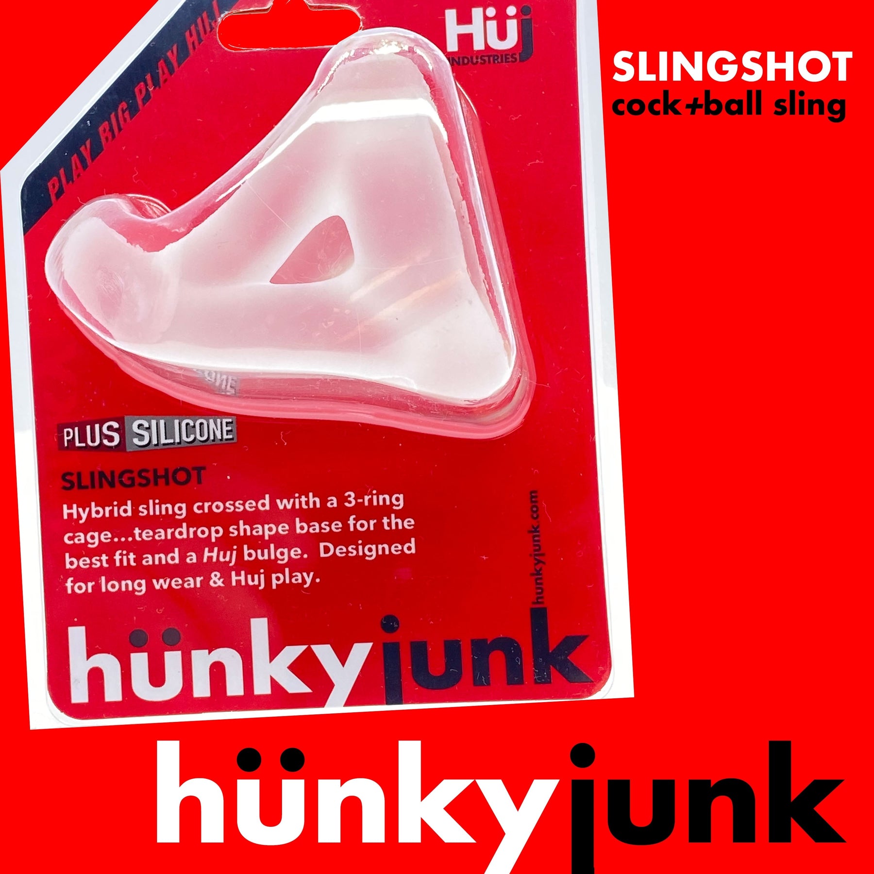 Slingshot 3 Ring Sling Ice from Oxballs. Slingshot is the best fitting sling have ever made. It is a hybrid cock sling with a tear drop base. This sling fits because it is shaped to fit you. Each opening is the right size to form ergonomically to your shaft and balls. The tear drop shaped base comfortably wraps around the top of your ball sack and tapers back to snugly fit between the legs with an upward curve so it rubs your taint. The ring at the front has a slight dip at the base. This reduces pressure on the sensitive underside of your cock. The side cut outs reduce bulk and weight so this sling will fit all sizes and feel like it is connected in a way no other sling can. Part of what makes this feel so good is our Plus + Silicone, TPR Silicone blend feels smooth and warm like Silicone + strong and stretchy like pure Thermoplastic Rubber TPR. Hunkyjunk Sling Shot for Huj bulges! Categories: Love Rings, Cock Rings, Men's Cock, Ball Gear, Gentlemen Cock Rings. 2022.