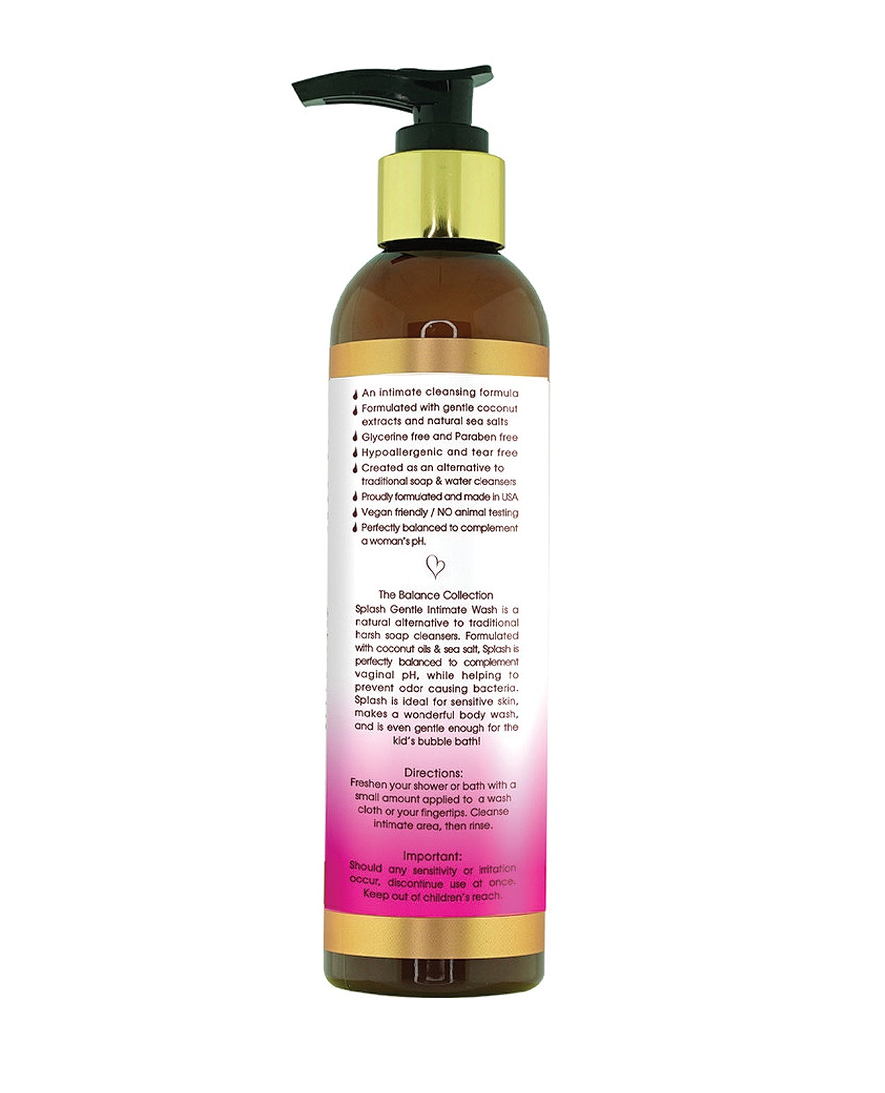 Sliquid Splash is a gentle feminine wash, formulated as always completely glycerin and paraben free. All are great alternatives to traditional soap and water and other harsh detergents. Fragrance formulas are blended with essential oils, coconut derivatives, and sea salt. Sliquid Splash is perfectly balanced to complement a woman's PH. Intimate cleansing formula is 100% vegan friendly, infused with certified organic botanicals, helps to remove odor-causing bacteria, glycerin free and paraben free, hypoallergenic and non-toxic. Grapefruit Thyme. All Sliquid products are Glycerine Free, Paraben Free, Hypoallergenic, and proudly Made in the USA.