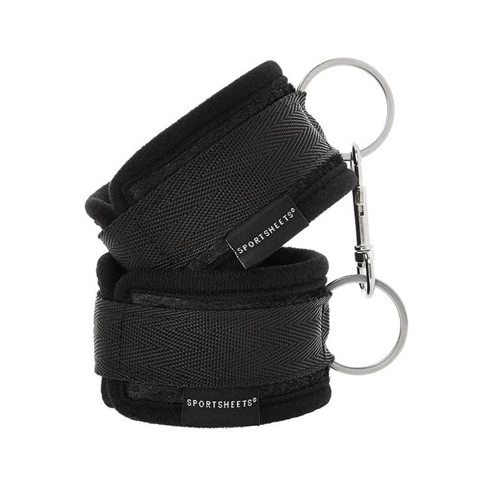 Linked together handcuff style, or connected to your favorite Sportsheets® restraint system, these cuffs are lined with ultra soft material to keep those tender wrists and ankles safe, yet securely latched in the heat of the moment. Tough on the outside, smooth on the inside, these restraints feature easy-off hook and loop closures, constructed of durable metal that's sure to keep a tight lock on every naughty situation you dream up.