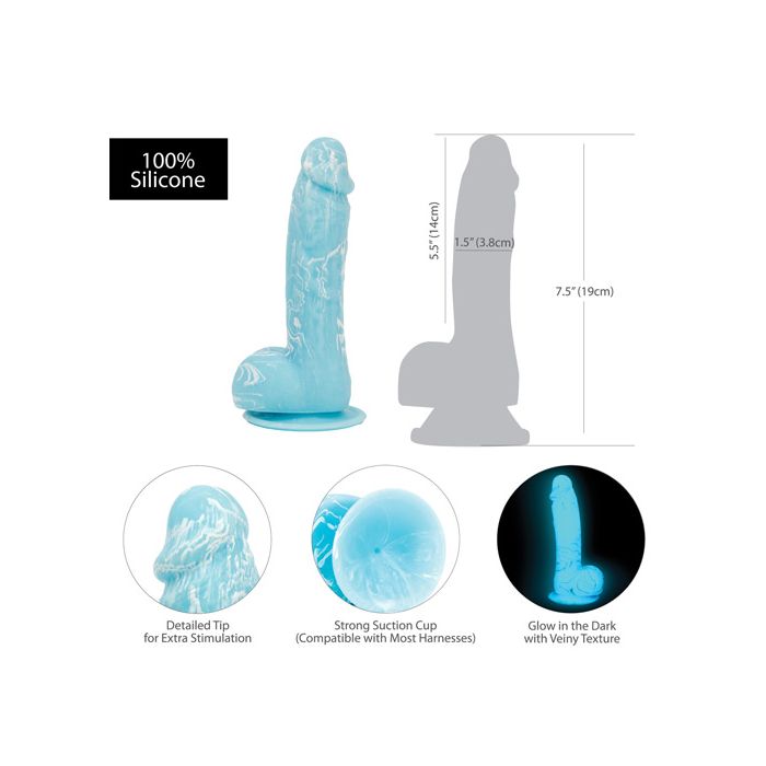 Addiction Luke Glow in the Dark 7.5" Dildo - Blue