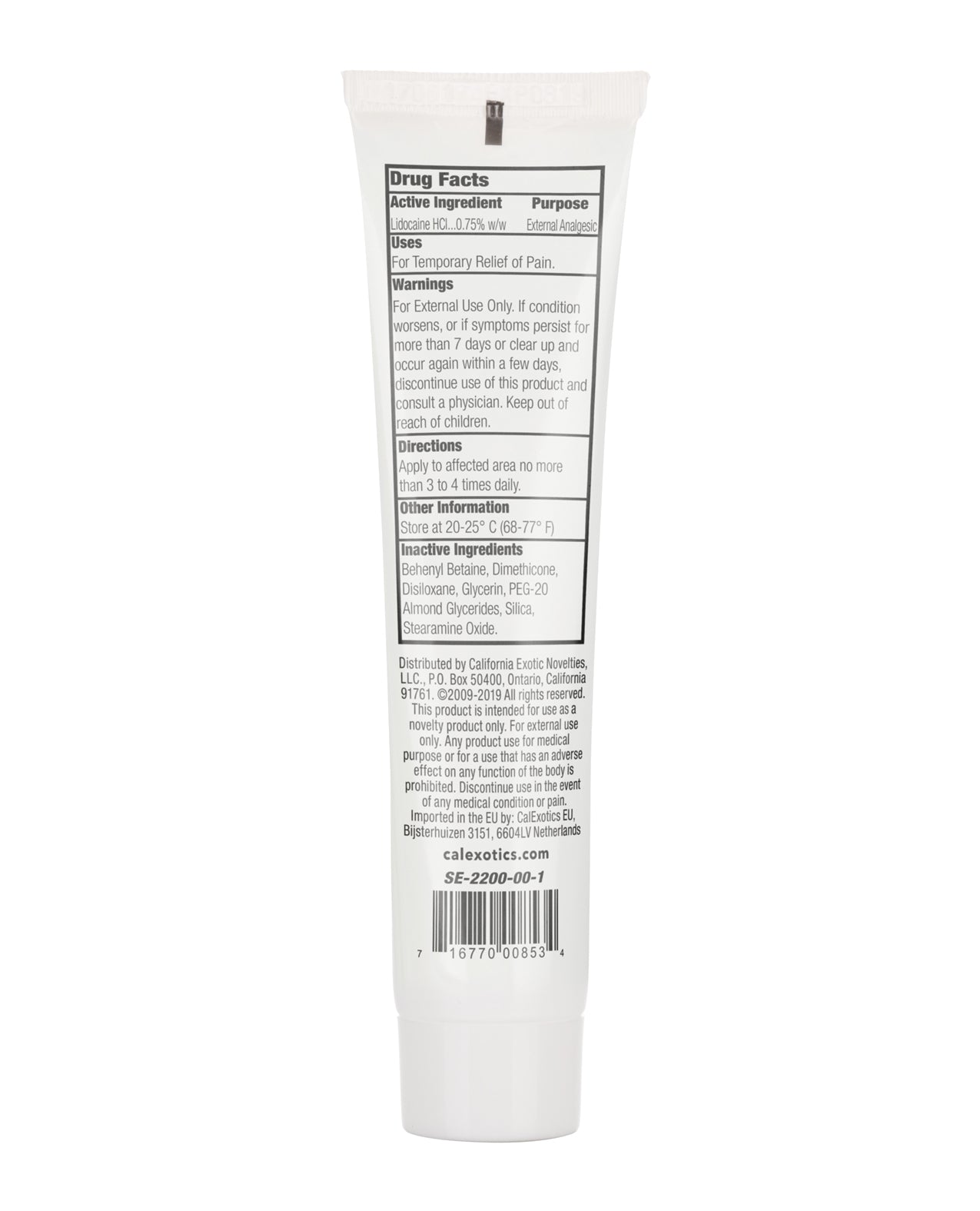 Enhance the pleasure of anal intercourse with desensitizing lubrication. The Anal Eze high potency formula eliminates any discomfort and provides the ultimate in anal sex satisfaction. Smooth and slick - this unscented, medium strength gel is a must have personal lubricant for couples who want a pleasurable adult experience. Lube comes in a 1.5 oz. tube Bulk.