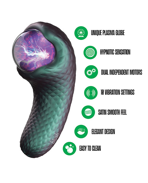 Unlock your deepest desires with Temptasia’s Enchanted Serpent, a mythical pulse vibrator that lures you into a realm of erotic fantasy. With its mesmerizing plasma globe, it illuminates your most intimate moments with a captivating and responsive visual display, while amplifying every touch. The Enchanted Serpent’s dual motors create a fully personalized play experience, allowing you to customize each setting to match your every desire. Surrender to the allure of its 10 tantalizing settings—perfectly combining internal and external sensations for pure satisfaction. Made from luxurious textured silicone, its satin-smooth surface glides seductively across your skin, igniting arousal with every touch, and its glowing pulse adds an otherworldly thrill to your intimate adventures. Waterproof and USB rechargeable, the Enchanted Serpent is always ready for your next passionate escapade. Surrender to its seductive charm and let it guide you into a new realm of pleasure and ambient fantasy.