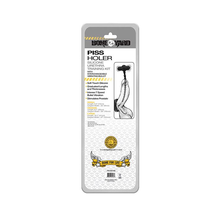 Silicone urethra trainer kit with interchangeable 7-speed vibrating bullet. 3 ribbed super flexible dilators with different length and diameter (9, 10 and 12 mm), great for intense urethral and prostate stimulation, for beginners as well as advanced users.