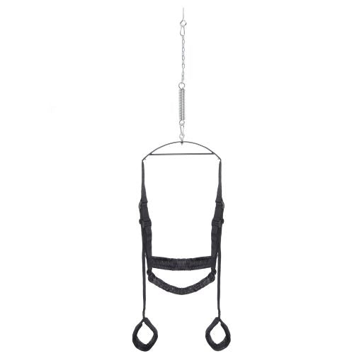 Fetish Fantasy Series Fantasy Swing Black from Pipedream Products. With the incredible Fantasy Swing you will be swinging your sex life back into action in no time at all! Installation is quick and easy and requires only a few common tools. The eyelet bolt of the Fantasy Swing can be installed in two places: into the underside wooden frame of a doorway, or into a beam in the ceiling. Installing the eyelet bolt into a door frame is easiest, but the doorway limits your range of motion. Installing the eyelet bolt into a strong ceiling beam is the preferred method of use. Please follow both sets of instructions carefully to ensure a safe and enjoyable Fantasy Swing experience. For doorways: Locate the center of the wooden doorway and mark a spot on the underside of the door frame. The eyelet bolt is very sharp and can be screwed in by tapping the head of the bolt with a hammer and twisting the screw until all of the threads are concealed. Use the hammer claw to help turn the eyelet bolt into the wood. To facilitate insertion, drill a 5/16 pilot hole first, then screw the eyelet bolt in. All of the threads should be concealed. For Ceilings: Locate a beam in your ceiling using a stud finder, available from any hardware store. Make sure you have enough clearance from any surrounding walls or furniture. Find the center of the beam and mark a spot. The eyelet bolt is very sharp and can be screwed in by tapping the head of the bolt with a hammer and twisting the screw until all of the threads are concealed. Use the hammer claw to help turn the eyelet screw into the wood. To facilitate insertion, drill a 5/16 pilot hole first, then screw the eyelet bolt in. All of the threads should be concealed. Caution: Once the eyelet bolt is installed, do not remove it for safety purposes. Doing so could weaken the eyelet bolt hold! Hanging the Swing if the weight on the swing is less than 200 pounds use the Torsion Spring provided If the weight on the swing is over 200 pounds, assemble the swing hardware without the use of a spring. During two-person usage, make sure to account for the position of both partners when determining the weight one partner may be on the floor, not actually hanging from the spring. Warning: If using Torsion Spring, avoid putting hands on or near spring while using the Fantasy Swing. Your fingers or other body parts may get pinched if too close! The Fantasy Swing is fully adjustable and designed for your comfort. All pads, supports, and stirrups can be adjusted to accommodate a variety of sexual positions with minimal exertion. The hardware for the swing can also be adjusted to hang the swing any distance from the floor. Use your imagination and have fun! Warning: suggested weight limit not to exceed 350 pounds. Install and use at your own risk. Country of origin China. Fetish Fantasy Fantasy Swing is featured in Fetish Fantasy Catalog. Package dimensions: depth 6.75 inches, width 3.50 inches, height 20.00 inches. Packaged weight 7.75 pounds. Package type Box. 90 days warranty. Categories: Bondage, Fetish, Kink, Sex Swings, Sex Machines, Erotic Furniture, Sex Toys for Couples, Sensual Kits. Restricted, Amazon Restricted. 2022.