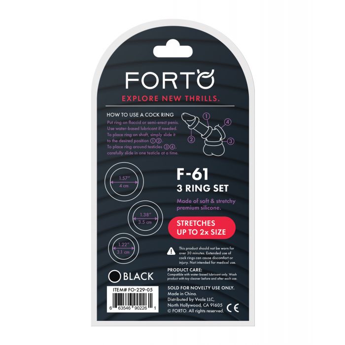 Forto F-61 Liquid 3 Piece Cock Ring Set - Black