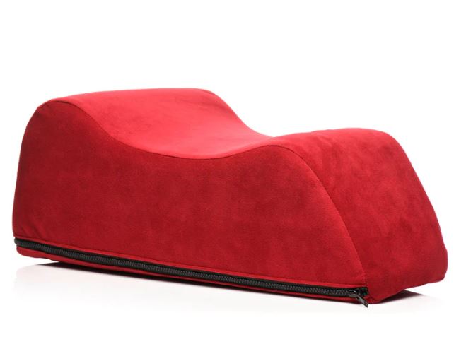 With this high-density foam pillow, you get all the support you need while riding the edge of pleasure! This pillow is ergonomically designed to fully support your weight. The 7 inch deep, open-ended pocket fits nearly any wand vibrator so it stays in place as you enjoy hands-free stimulation! As a bonus, the soft outer cover and the water-resistant inner cover are both machine washable! Enjoy hands-free stimulation as you straddle the ultra soft pillow, effortlessly lifted up so you can enjoy your partner's passionate affections or angle yourself to ride the toy of your choosing as you indulge in solo-play! The toy pocket at the top fits most toys but is especially designed for wands, vibrators and dildos. Spice up your sex life and use a vibrator while getting penetrated by your partner! Place this high-density foam onto a bed, couch, bench or the floor. Harder surfaces give even more support for the pillow, but softer surfaces give padding to your knees. Grab your favorite toy and slip the base into the pocket. Then turn it on and use some lube as your begin to writhe and grind. Bring your partner in on the action, too! As they slip their hands around you body, they can enter you from behind, your body perfectly poised to receive them as you simultaneously buzz your most sensitive spots! Play around and have fun! Flip over and use the pillow to help them plow you deeper and hit the right angle! Lift up your hips, support your body and explore new positions all with this one formidable, foam pillow! Measurements: Length: 20 inches. Width: 11.5 inches, Height: 8 inches. Wand pocket: 7 inches in depth; top & bottom openings are 2 inches in diameter. Materials: Foam, polyester, nylon