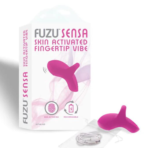 Fuzu Sensa Skin Activated Fingertip Vibe Pink from Doctor Love. This skin activated vibrator with 8 powerful patterns is a world's first and it will thrill you! Simply tap on skin anywhere to change patterns. Buttonless and a compact size with a penetrating reach, you can discreetly use this mighty finger vibe everywhere! The 15,000 vibrations per minute are strong yet quiet at less than 50 dB. Made of body safe Silicone and waterproof, the velvety soft texture will please you and yours while delighting the senses. Fully rechargeable for hours of fun, it comes with a magnetic USB cable and a storage pouch. Working, play time is 60 minutes and charging time is 75 minutes. Categories: Vibrators, Rechargeable Vibrators, Finger Vibrators, Body Massagers, Health and Beauty Aids. 2022.