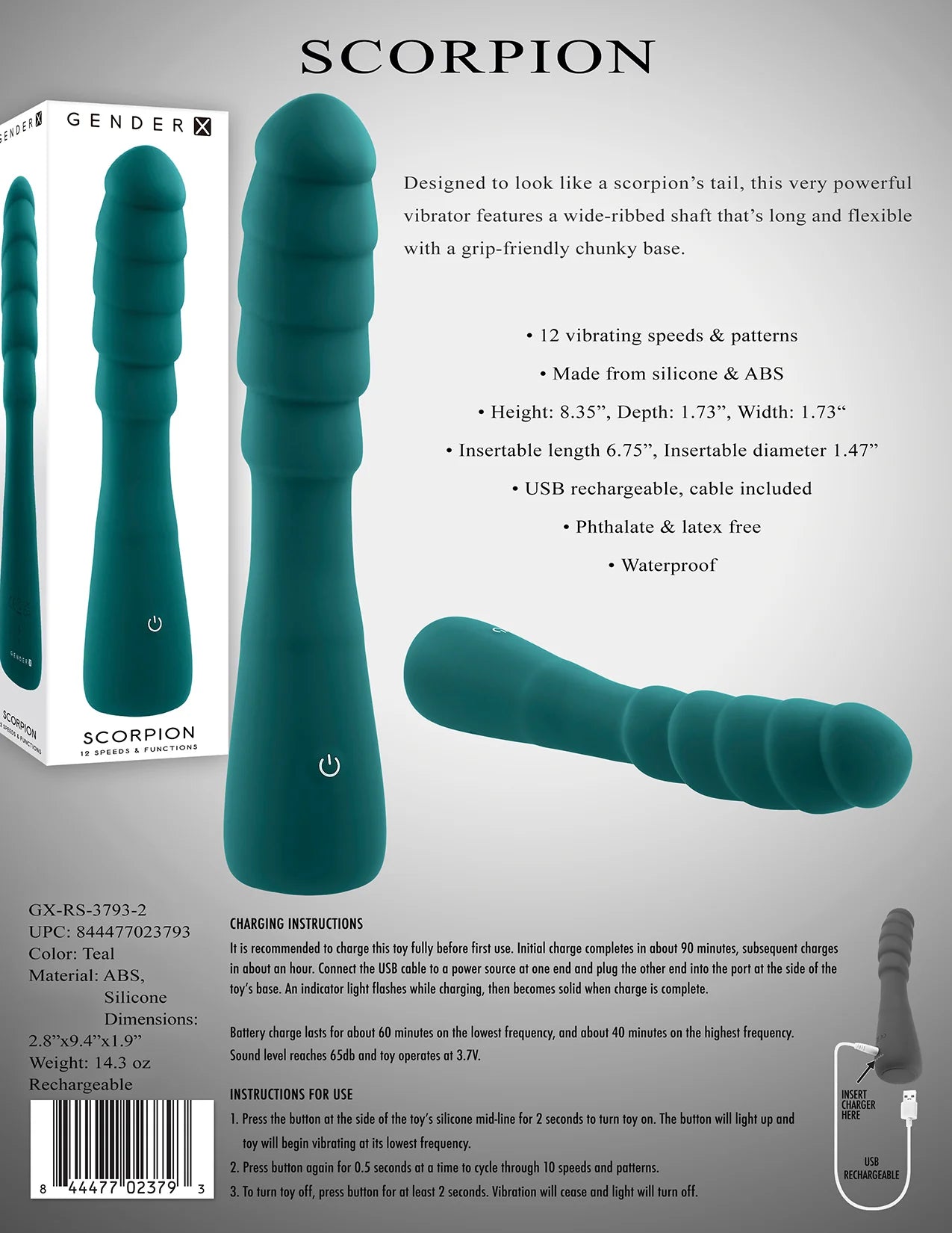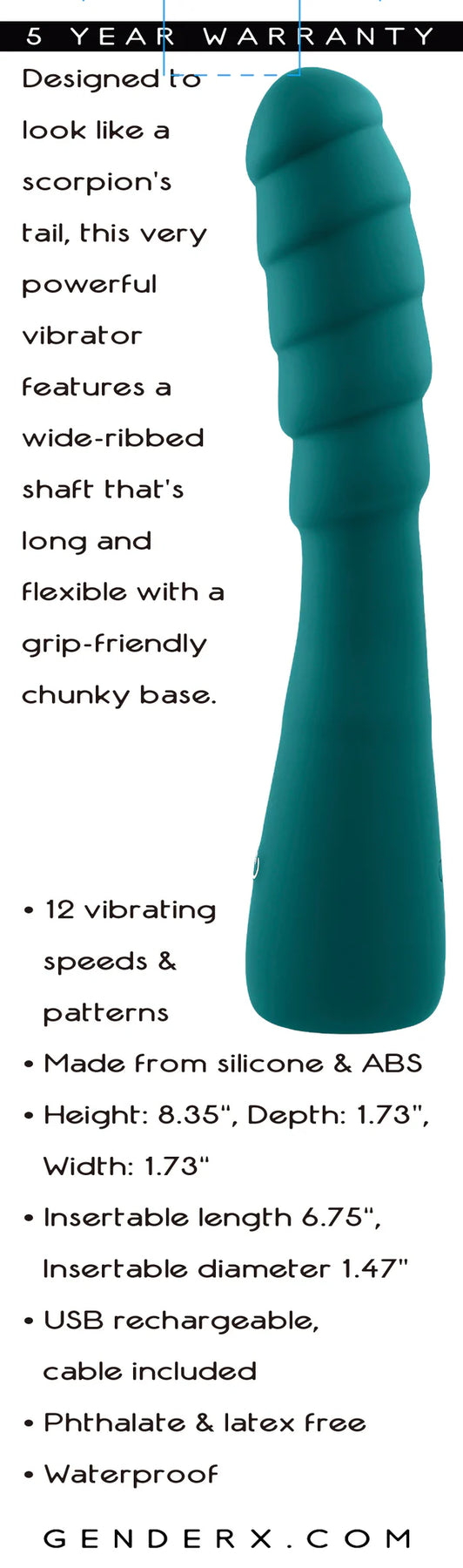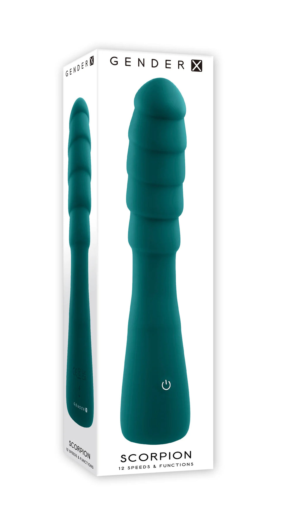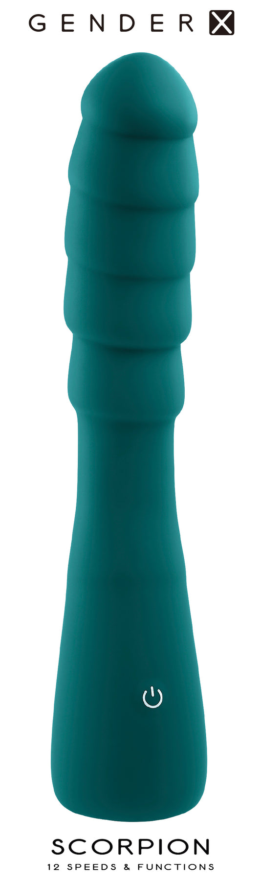 Gender X Scorpion Green Vibrator from Evolved Novelties. Designed to look like a Scorpion’s tail, this very powerful vibrator features a wide ribbed shaft that is long and flexible with a grip friendly chunky base.