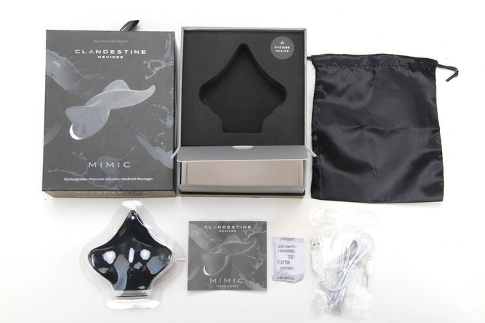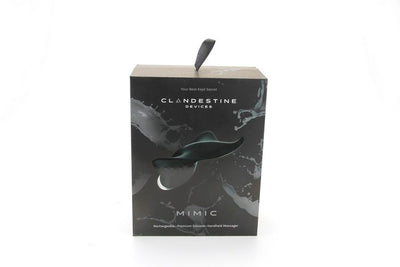 Clandestine Devices Mimic Massager Manta Ray shaped Black hand held is a sensory experience. Designed to be touched. Mimic took shape with the human form in mind. Acting like an extension of the hand, Mimic was designed with a user friendly interface, thoughtful colors, and features to ease use in the dark and underwater. It is not necessarily limited by gender, only the imagination. Mimic is unlike any other, it is soft, sleek, slender, and feminine. Mimic was crafted with comfort and pleasure in mind. Its unique, ergonomic shape fits perfectly in the curve of your hand. You can easily access the simple thumb controlled interface, which allows eight intense vibration patterns to travel to their pinpoint location or a more broad sensitive zone via the body, wings, and tip. Apply Mimic to the body to stimulate the clitoris, labia, and vulva. Massager is designed to hit multiple pleasure points at one time for a mind blowing sensation. Or use it with a partner. The thin device allows you to hold it between your bodies while being close for clitoral stimulation and penetration during intercourse. The USB rechargeable Mimic is waterproof for fun in and out of the water and easy cleanup. Vibrator features: 8 vibration patterns. Keeps things interesting. Made using body safe Silicone for your most sensitive parts. 100% waterproof. Enjoy anywhere. Travel lock make your journey memorable. LED Glow for when the lights go down. Discreet vibrations a secret worth keeping. USB Rechargeable. One year warranty provided by Clandestine Devices. Silicone shaft, ABS plastic base. 4.2 inches overall length. 1.5 inches top, 2 inches center by .75 inch top and .9 inch bottom. Clandestine Devices - Mimic Massagers. Categories: Vibrators, Clitoral, Rechargeable Vibrators, Sextoys for Women. Restricted, Amazon Restricted. 2023.