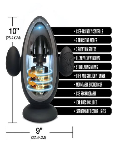 Get ready to blast off to new levels of pleasure with the MSTR B8 Blast Off Stroker! With 7 thrusting modes and 3 rotation speeds, this stroker will take you on a wild ride. The realistic moaning, soft tunnel, and LED lights add to the experience while the suction cup and USB charger make it convenient. Thrust, vibrate, and blast off! Product