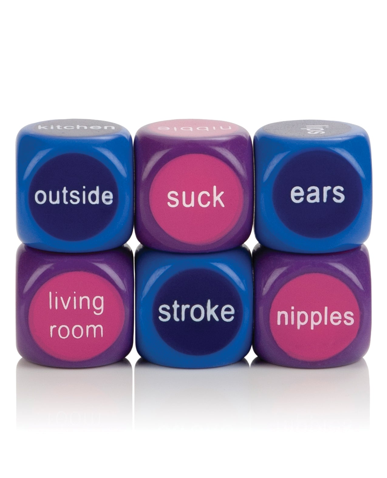 Get the intimate party started with the Hot & Spicy Party Dice. The raunchy dice game has simple rules for maximum adult fun and is designed for couple’s play. Put your orgasmic pleasure and climax satisfaction in the hands of destiny by throwing the dice and following the clear instructions. The choices will direct you to try out fresh seduction and arousal ideas that take you all the way to ultimate ecstasy. The game comprises of 2 sets of 3 colored dice – pink for her and blue for him. Each dice offers 6 tantalizing choices of erotic possibilities that include individual body parts, pleasurable actions and new locations for your amorous encounter. Take turns rolling the dice, and discover how you will enjoy the next sensual play session. Take a chance and satisfy your lover by following the rules of the game. Introduce a fun element to couple’s intimacy with the dice. The playful erotic game is great for breaking the ice in stale situations, is perfect for creative lovemaking ideas, and ideal for thefirst time and experienced users. The fully portable, travel-sized party game can be used for spontaneous seduction whenever you go. Share the thrill of chancing your luck on the roll of a dice. Once you have played out your determined stimulation choices, relax and enjoy your turn at receiving the heightened sensuous pleasure.