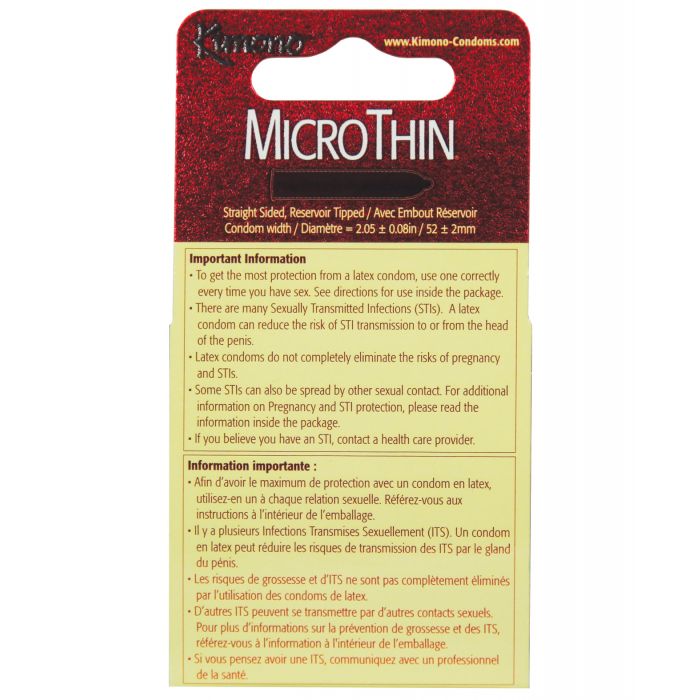 Slip into a Kimono and feel the difference. Kimono MicroThin condoms are thinner than ever and feature a new straight-sided shape to provide increased comfort and ease of donning. All Kimono condoms exceed all US and international standards for strength and reliability so you can use them with confidence. Comes in box of three.