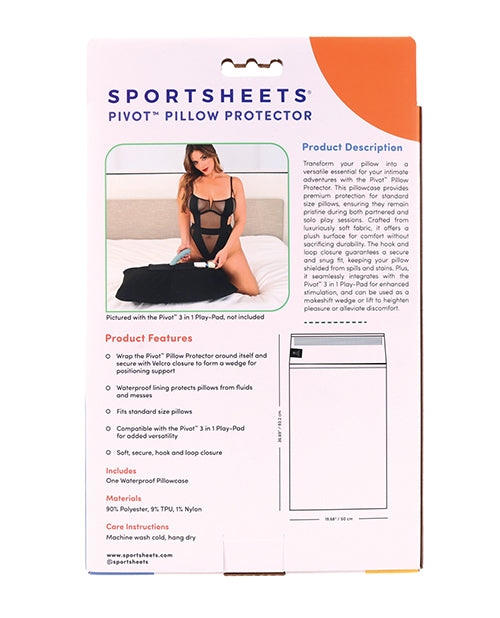 Transform your pillow into a versatile essential for your intimate adventures with the Pivot™ Pillow Protector. This pillowcase provides premium protection for standard sized pillows, ensuring they remain pristine during both partnered and solo play sessions. Crafted from luxuriously soft fabric, it offers a plush surface for comfort without sacrificing durability. The Hook & Loop closure guarantees a secure and snug fit, keeping your pillow shielded from spills and stains. Plus, it seamlessly integrates with the Pivot™ 3 in 1 Play-Pad for enhanced stimulation, and can be used as a makeshift wedge or lift to heighten pleasure or alleviate discomfort.