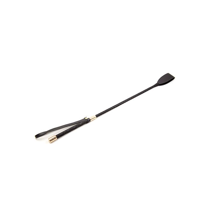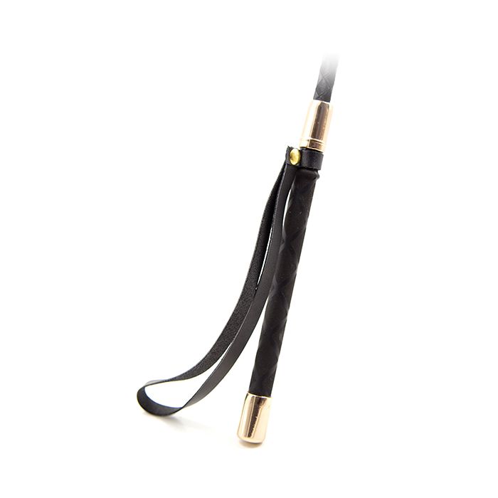 PVC Crop. Braided handle with gold accents. 21 inches overall. Handle is 6 inches. wrist strap.