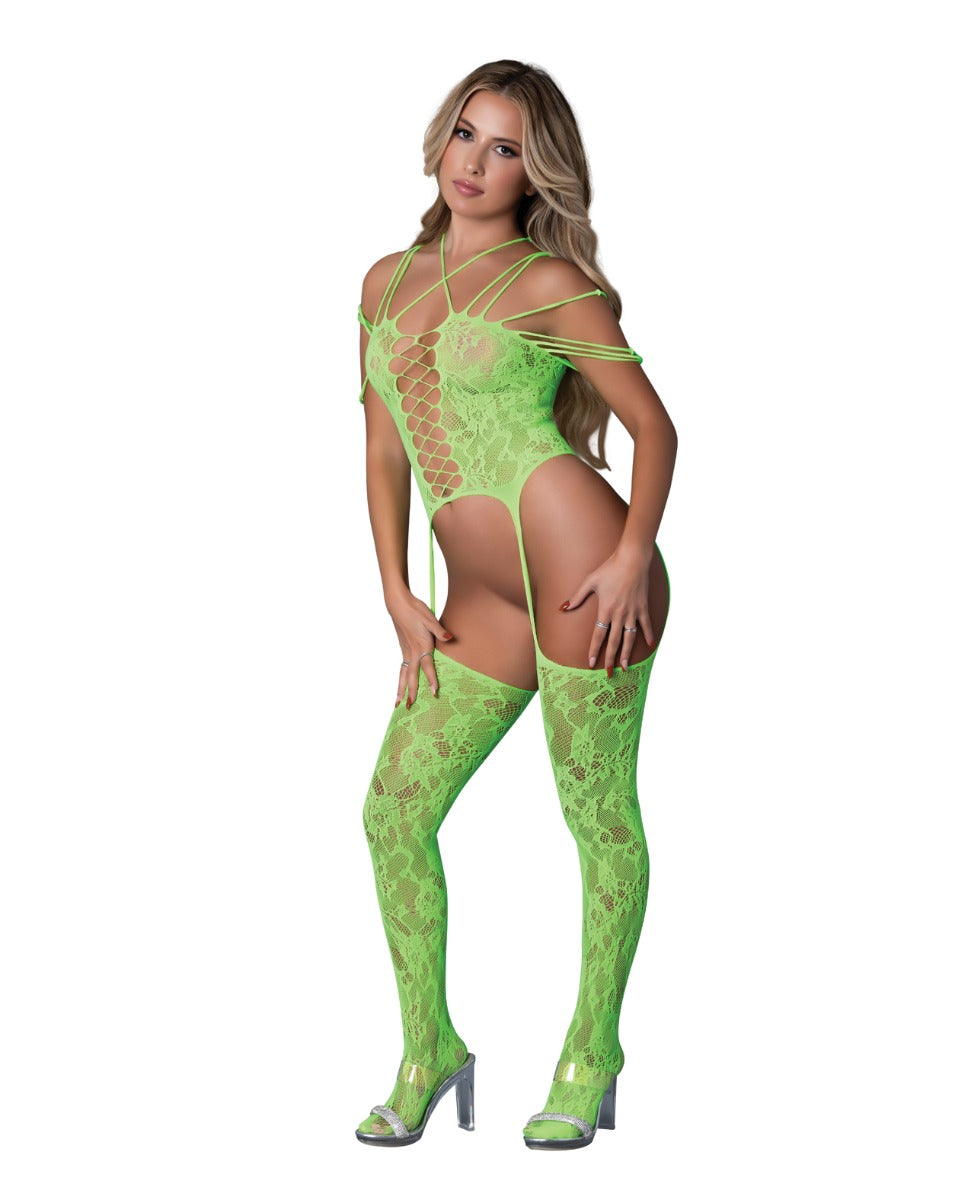 Seamless Strappy Body Stocking - Neon Green O/S