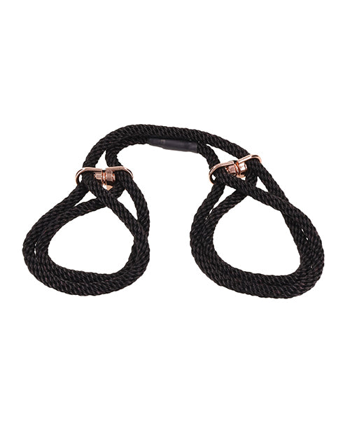 Teach your bratty bottom how to properly submit with the perfectly curated Knotty Brat Kit! Keep them restrained with the included rope handcuffs in a stunning black with rose gold metal accents while you tap and tease every inch of their body with the accompanying mini crop. Punish them by taking away their sight with the included satin blindfold emblazoned with ‘BRAT’, and inflict them with your every naughty desire they deserve.