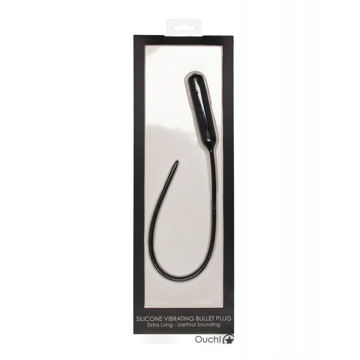 Shots Ouch Extra Long Urethral Sounding Silicone Vibrating Bullet Plug - Black