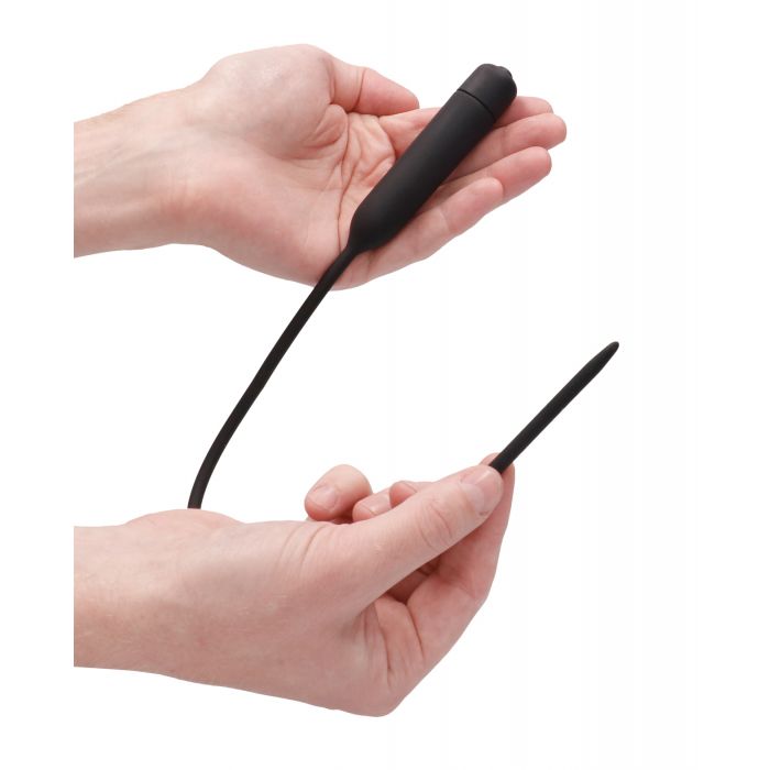 OUCH! Introduces a new line of toys for urethral explorers! If urethral sounding is your kink, then let these smooth probes deliver the ultimate pleasure! The urethra is lined with super-sensitive nerve endings, which can be extremely pleasurable when stimulated. Additionally, deep urethral play is the only way to directly massage the prostate. OUCH! Has a variety of urethral sounding probes for beginners as well as advanced users! This SUPER-LONG vibrating model is very flexible and the rounded tip allows easy insertion. The probe has a single vibration mode going up to a staggering 12.000rpm but is ultra quiet at less than 50dB. It takes one (included) AAA battery. Made from super-smooth medical grade, phthalate-free silicone, the toy has a total length of 45cm (17.7"), an insertable length of 35cm (13.41") and a diameter of 0.5 cm (0.2").