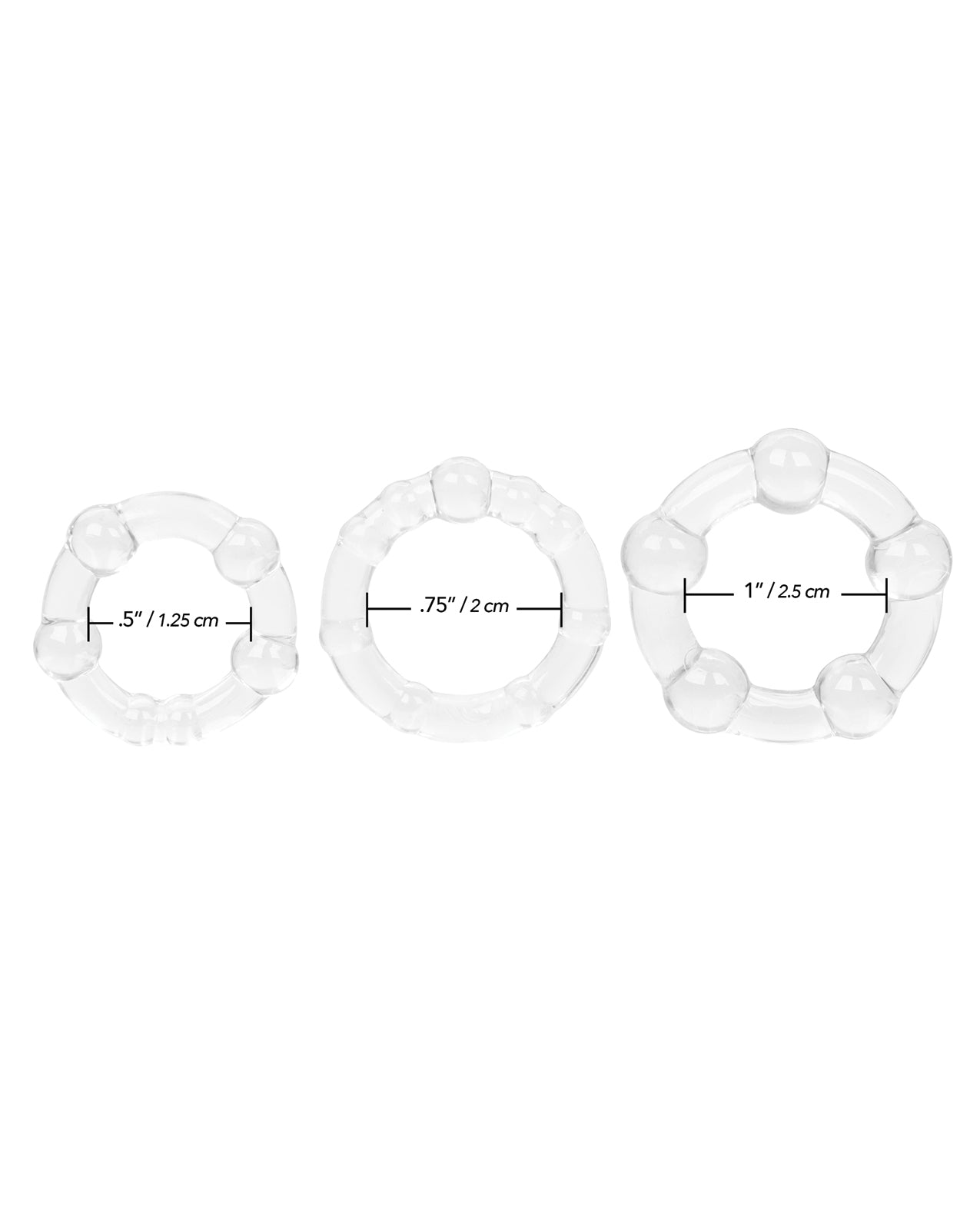 The rings are made from soft, smooth and flexible, transparent TPR and are adorned with sensuous pleasure beads and stimulation nodules, for enhanced orgasmic sensitivity. The exotic erection enhancers are designed to support stamina for prolonged performance. To use, choose your ring and slide it on to the erect penis so that it provides a secure fit at the base. Use a quality lube for increased sensations and unlimited enjoyment.